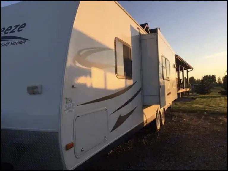 This unit is equipped with air conditioning, microwave, drip coffee maker, full stand up shower, outdoor kitchen, exterior BBQ and so much more.The trailer comes with multiple options for wining and dining. Washable kitchen supplies, as well as a surplus of single use disposables. Basic towels are provided for your stay (bath, beach, hand and face clothes). Bedding can also be provided for an extra fee.The trailer is not equipped with stabilizer/ sway bars.All items are sanitized, cleaned and washed in hot water before the unit is sent out.You wont be disappointed, book today!Booking requires minimum full size half ton truck, complete with a brake controller. What's includedCamping chairs, camping mat, campfire sticks, washable and disposable kitchen supplies, pots/pans, cooking utensils, soap, scrubbers, bath towels, hand towels, face clothes, paper towels, toilet paper, basic bathroom supplies (shampoo, conditioner, body wash, soap, sunscreen, bug spray), games, cards, extra blankets, spices, drip coffee maker, tea kettle, perk coffee pot, garbage and recycling bags.Grab your groceries and you are ready for the road! Bedding can be provided for a small fee.Other things to noteThis pet friendly, well taken care of unit is turn key and ready to be taken on its next adventure.Delivery within Southern Alberta is available for a fee!