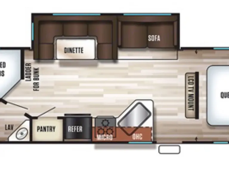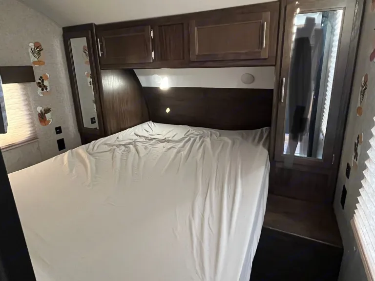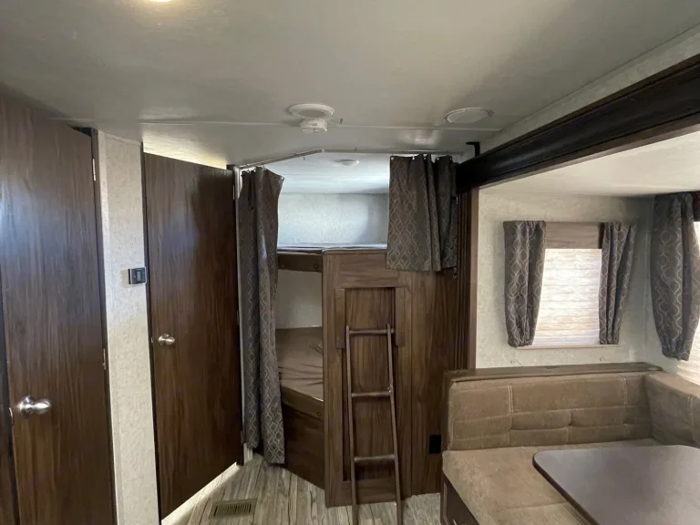 Extra refrigerator space in the outdoor fridge. Never run out if Ice with the Countertop ice maker.Linens available upon request for extra feeComfortable floor plan allows plenty of privacy in the front bedroom and even for this sleeping on the bunks..What's includeddishes, flatware