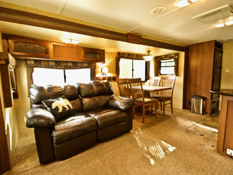 Luxury camper with 2 slide outs that make a very large living room, very comfortable with reclining sofa, flatscreen tv, built in in-door/out-door stereo with DVD player,