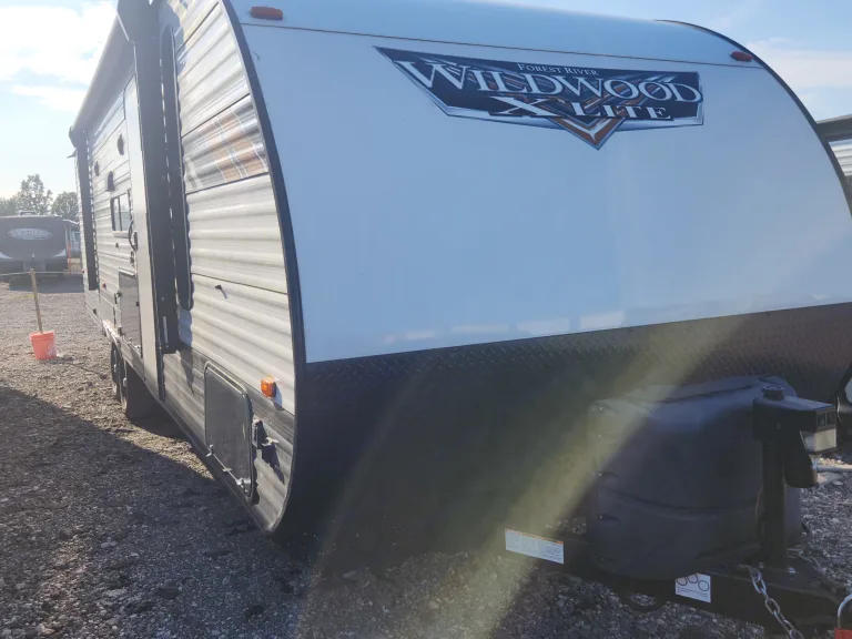 What's included2021 Forest River Wildwood XL pull-behind camper includes a power awning with LED lights, a tankless water heater, a fireplace, an outdoor kitchen with a griddle and refrigerator, and a "Versa-Tilt" king bed.