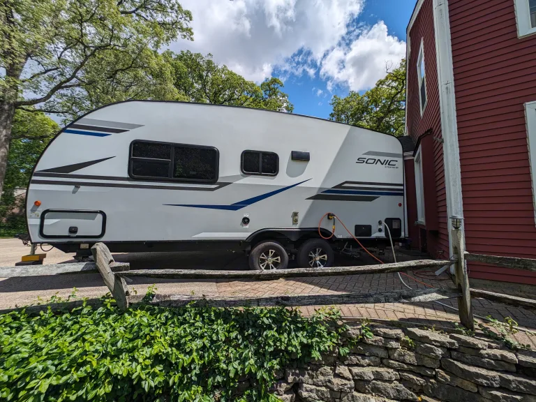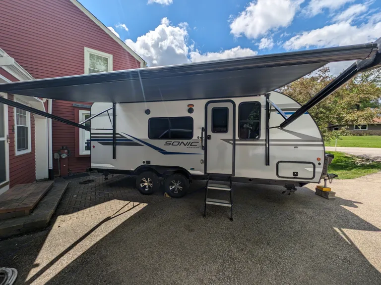 So well engineered, so well designed! And we deliver! This dog-friendly solar-equipped Sonic 190VRB gives you the best of both worlds, maximum towing efficiency AND uncompromising comfort and style. This pristine Sonic travel trailer is lightweight and designed for smaller tow vehicles, while, at the same time it’s equipped with upscale amenities seen mostly in bigger, costlier motorhomes and fifth wheels. Don't have a tow vehicle? No problem, we'll bring the Chateau To Tow to your campsite and take care of all the setup! You'll love the peace and tranquility, even off-grid.The tandem-axle trailer is surprisingly spacious, features 82” ceilings, a residential kitchen and tons of storage. Enjoy most all the comforts you are accustomed to at home, even a slick Murphy bed that folds up and reveals a very comfortable couch. You'll start with tanks full of water and propane and fully charged batteries.Take a look at all the following things that make this camper the perfect choice for people, young and old, to economically enjoy the great outdoors without compromise:• Off the grid solar panel with 100 watt panel and controller