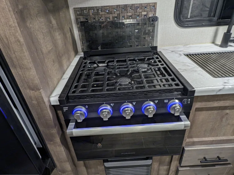 • Glass, flush-mounted 3-burner cooktop with oven