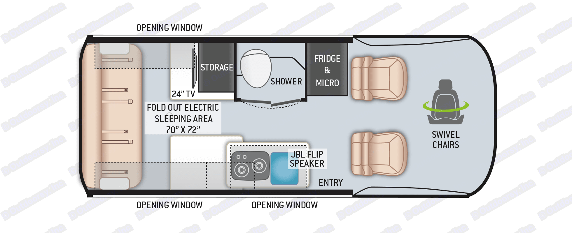 No SmokingAt pick-up make sure you budget about an hour for an Inspection and Walk-Through Crash Course on operating all the systems in the van.NOTE: Cold weather trips (trips when average temps fall below 40 degrees) - Water tanks will be drained and water use not permitted. Toilet still functions.