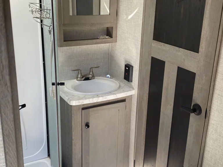 Beautiful RV with all the amenities you will need for a perfect coastal getaway. RV has never had smokers and is well maintained. What's includedThe Allie Mae is a comfortable way to go camping, go to the beach or just relax. The Allie Mae sleeps 6 which include a king size bed, a queen pull out sofa and the dining turns into a bed. It is equipped with a 55 inch TV and a cd/dvd/Bluetooth stereo system. Nice grey cabinets with plenty of storage throughout the camper inside and outside. Rv comes with fresh linens, towels, cookware, utensils, knives, toilet paper, movies and board games. RecommendationsRockport is a quaint little arts town with shopping, restaurants, nightlife and a beach. Plenty of walking trails and sceneryOther things to notePlease do not take camper on the beach!! Please no smoking Leave it like you Found it. This is a delivery only camper. Delivery and set up charges will be applied. Please advise if there will be a pet!