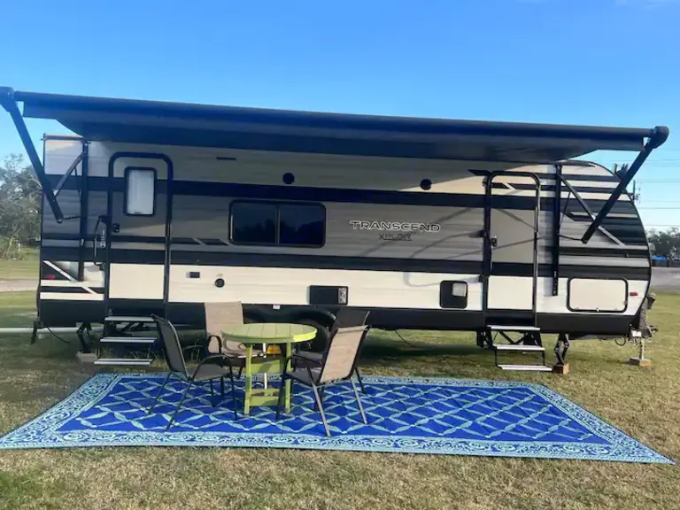 2022 Grand Design Transcend, this cute 1 bed 1 bath RV is the perfect coastal get away, we have the unit in a permanent spot in Rockport TX, your nightly rental already includes the rv spot and all utilities. there is a laundry facility on site.