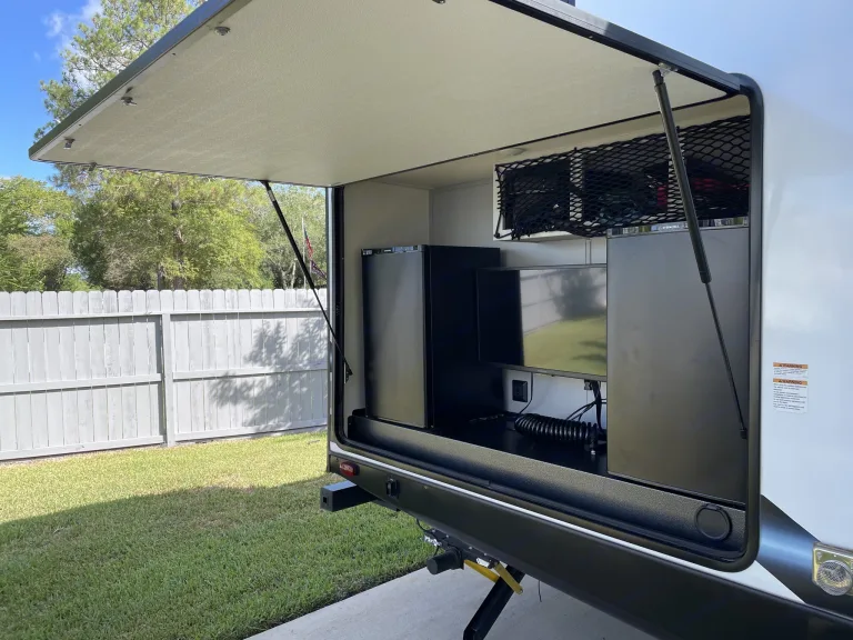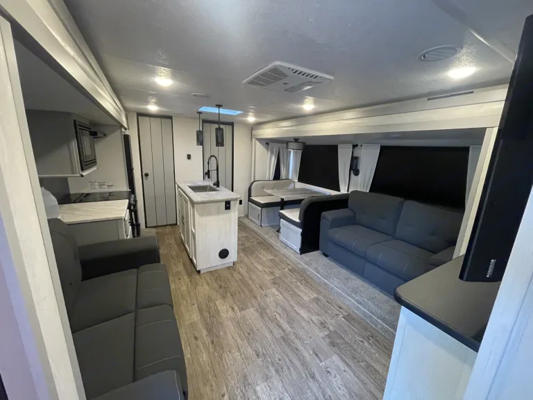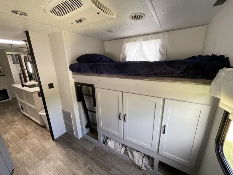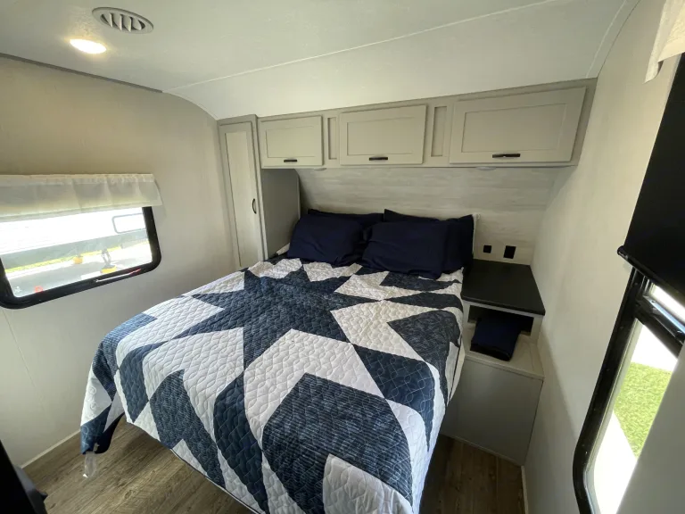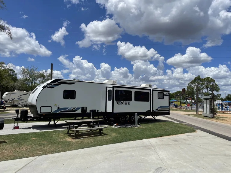 2021 forest river vibe 34bh. Gently used travel trailer. Sleeps 12 (mix of adults and children) Upgraded memory foam queen in primary. Upgraded memory foam twin in one of the 4 beds in the bunkhouse. 2 ac’s, solar capable, one tv indoors and one outdoors located under the lift gate and other 2 mini outdoor fridges. 2 outdoor showers- one has hot water, awning, party lights. 39ft long. What's includedFully outfitted to camp.Airport pickup from Hobby Airport available upon request.Other things to noteNo smoking inside.