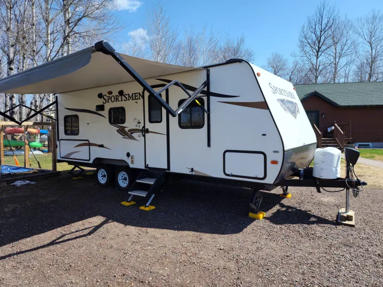 Ready to leave the city and relax in the North woods? This 26' camper is ready for your family to make new memories in. It comes fully stocked with everything you will need for your trip. This camper will comfortably sleep 4-5 with the queen size bed up front, two large bunks in the back, and a dinette that converts into a bed. We are conveniently located a couple of miles off of either HWY 33 or HWY 53 right on your way up North.The camper weighs 4800lbs dry and up to 6000lbs loaded so a minimum of a Large SUV or a 1/2 Ton Pickup with an electric brake controller will be needed. A weight distribution hitch is included with your rental.Delivery within a 50 mile radius is available for an additional charge.If you have any other questions please message meWhat's includedBedding if requested, Coffee Pot, Microwave, Toaster, Outdoor Cook Stove, Small Grill, Cooking Utensils, Pots, Pans, Plates, Silverware.