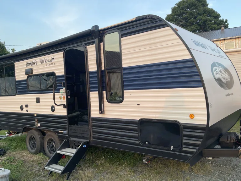 Roulotte Grey Wolf 2024 à louer, par Phénix Évasion. Roulotte toute équipée, il ne vous manquera que vos draps, vos serviettes et votre épicerie. La roulotte peut accueillir 4 personnes. Cette roulotte est non fumeur et certains animaux sont interdis.