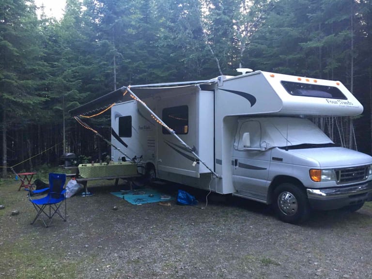 Équipement inclus: assiettes, équipement de cuisson, cafetière Keurig, grille-pain, bbq portatif, table et chaises pliantes pour extérieur, tapis extérieur, produits chimiques pour reservoirs d'eaux usées, etc..Litterie et serviettes non-incluses.Nous demandons de remettre le véhicule aussi propre qu'au moment de la prise de possession au début de votre séjour. Sinon des frais supplémentaires de 200$ seront chargés pour le nettoyage. Vous devrez également le remettre au niveau d'essence et de propane tel que recu à défaut de quoi, des frais s'appliqueront: