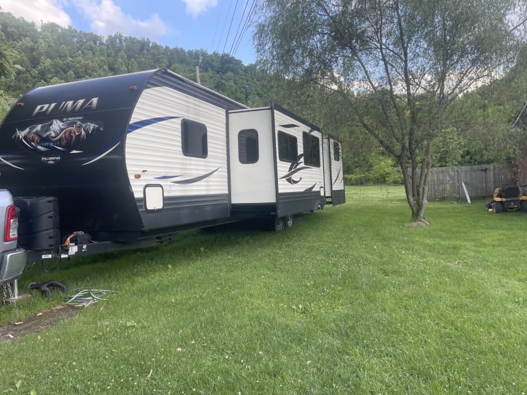 2019 puma. Sleep 4 adults comfortably, can sleep up to 10 if dont mind bunking. Will include foldout lounge chairs, corn hole boards, black-stone grill for outside cooking, foldout table, dvd collection. What's includedFresh linens, chairs, grill, table, corn hole board, dvd collection, outside tent for picnic coverage for bugs!! Pots/ pans cooking utensils etc. RecommendationsI recommend paintsville lake ky, fallsburg ky, carter caves ky, cave run ky, jenny wiley kyOther things to noteJust be kind and clean up best can. Can delivery and have set up at campsite within 100 mile radius for additional fee!! Contact [phone number removed] Also no smoking inside please.