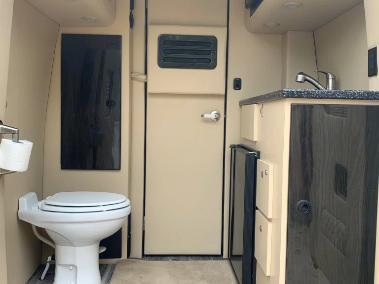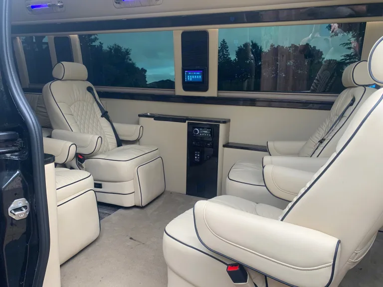 The Presidential Mercedes Benz Sprinter Van is designed for events and family use. There are six beautifully plush captain’s chairs. All passengers travel in comfort and style whether it’s a weekend excursion with family, birthday celebration, week-long vacation with grandparents and kids, or golfing with friends. The spacious interior of the Presidential is truly amazing. The classy Maybach ceiling allows plenty of headroom for passengers to freely stand up and walk around. Middle captain’s chairs swivel so guests can either face forward, or turn around and have a conversation with passengers in the back. It’s perfect for all occasions–both in a family configuration or transformed into a limo for a night on the town. The third-row of captain’s chairs has power footrests and fold-away solid wood lap tables–great for relaxing, reading, working on a laptop, playing games, or watching TV on one of the Apple flat-screens. And, let’s not forget the two comfortable couches in the back that make a bed for a quick nap or an overnight excursion. There’s even a large dorm-size refrigerator conveniently tucked away but within reach for drinks and snacks while on the road. This Presidential unit also has a bathroom for your traveling convenience.What's includedThis is a large passenger van. It is not an RVRecommendationsGreat for destination road trips. Other things to noteThere is an onboard toilet - but renter will need to empty black water tank with heavy use.