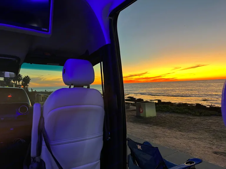 Portable Barbecue Grill, cooking table. RecommendationsWe love taking our Silver Surfer to La Jolla Cove, park right by the beach and just relax listening to the ocean wave and watch a sunset. Or you’ll enjoy Coronado Beach, bike riding in Silver Strand. Grandview Beach in Encinitas. Hiking at Torrey Pines Beach/Park. This diesel van is a dream to drive, with all the bells and whistles. This van is perfect for your ultimate road trip. Enjoy the luxury van life! Other things to noteThis is a 2 wheel drive. The Silver Surfer is not made for off road trip. Please! Only use True Diesel. Reusable Or Bio Diesel will damage the engine. Pets welcome!