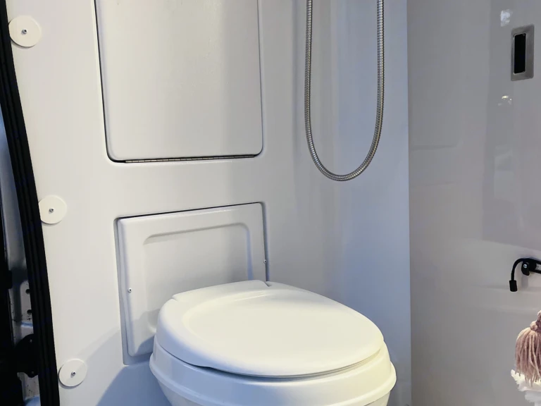 There is a full wet bath at rear of rig with 13 gal black tank toilet (you are responsible for emptying your tank prior to returning. There is a free dump station very close by. There is a 24 gallon fresh water tank which will be full when you take possession and a 13 water gray tank that will be empty for you.