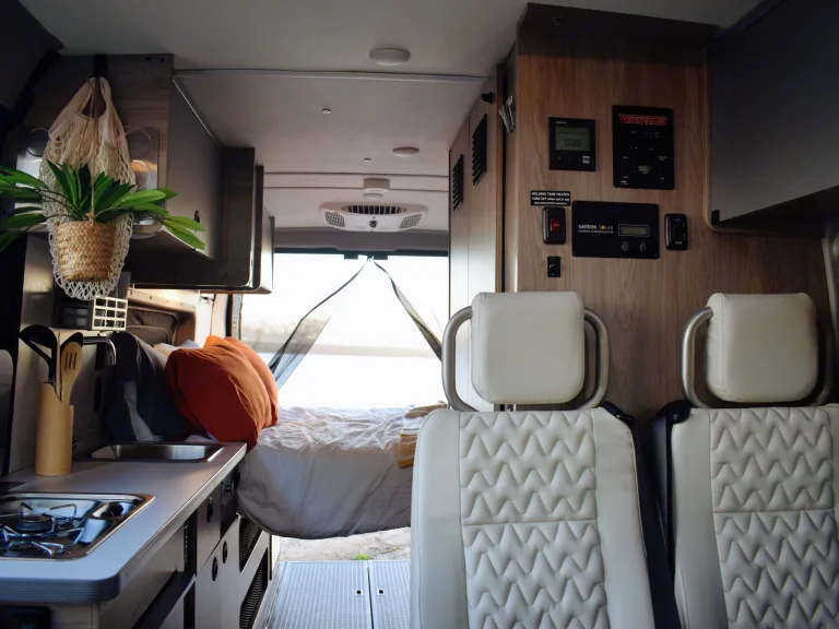 Winnebago Solis 59PX. Everything you need to hit the road! We want you to enjoy your trip without having to worry about adding on all the extras. See our list of Free add ons below. Our van has room for the whole family! With a fold out queen bed in the back and the additional pop top, this van is perfect for a family of 4. The additional two seats in the back come equipped with 3 point seatbelts able to strap in two car seats if needed.This van is ready to go fully off grid with Solar Panels, Indoor and Outdoor shower, Hot Water Heater, Propane stove, Kitchen sink, Fridge/Freezer, AC unit and Furnace. Everything can be run off of solar power and the generator. No plug in required!The 59PX is easy to drive with power mirrors, blind spot monitoring, digital rearview mirror, and guided back up camera.Gear garage: