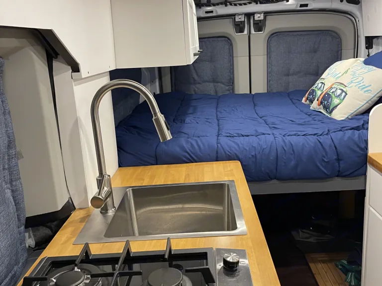 This newly converted, fully insulated van is ready for all seasons; from the beach in the summer to the mountains in the winter. It’s looking for a name still based on its personality, so if you have one in mind feel free to share after your rental!It has running water, electricity, a toilet, stovetop and a heater for those looking to get off the grid for an extended stay or short stint. A hot shower extends off the back doors to clean yourself up after an adventurous day. There is a roof deck coming soon, but storage is plentiful in this rig as the bed is lifted.My father and I converted this van from the ground up, we invested a lot of time and effort on the project. I ask that you treat it as you would your own van you built. What's includedFresh linens, extra blankets upon request, camping chair/table (optional), cooking utensils and cookware, and endless amounts of adventure provided. RecommendationsI’ve slept in campgrounds on the base of mountains (summers & winters) and near beaches to surf. The best feature about this van is the ability to stealth camp.