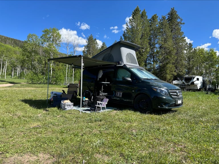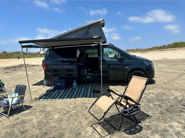 Introducing the Lush Mercedes Roamer, where modern comfort meets classic Westy vibes! This 2022 Mercedes Metris campervan is the epitome of adventure, combining the allure of the iconic Westfalia with new-age sophistication. Get ready to explore the open roads, hit the waves, and immerse yourself in nature's embrace.Key Features:1. Pop Top Elegance: Experience the best of both worlds with the Lush Mercedes Roamer's pop-top feature. Elevate your view and feel the gentle breeze as you relax in the cozy upper bed, perfect for stargazing or catching sunrise waves. This campervan comfortably sleeps 4 adults, offering ample room for everyone to unwind.2. Retractable awning: Create a shaded outdoor oasis, perfect for relaxing, dining, or enjoying the scenic views in comfort.2. Sleek and Low Mileage: The Lush Mercedes Roamer boasts a sleek dark green exterior, exuding elegance and style. As a new model with low mileage, rest assured that it's in pristine condition, ready to take you on endless adventures.3. Fully Equipped for Your Journey: Prepare scrumptious meals on the road with stovetop, prep counter, and Yeti cooler. The Lush Mercedes Roamer ensures you can enjoy your favorite meals even in the heart of nature.4. Adventure Gear Storage: With ample storage space, bring along your surfboards, camping equipment, and any other essentials without compromising on comfort.Get Ready to Roam!