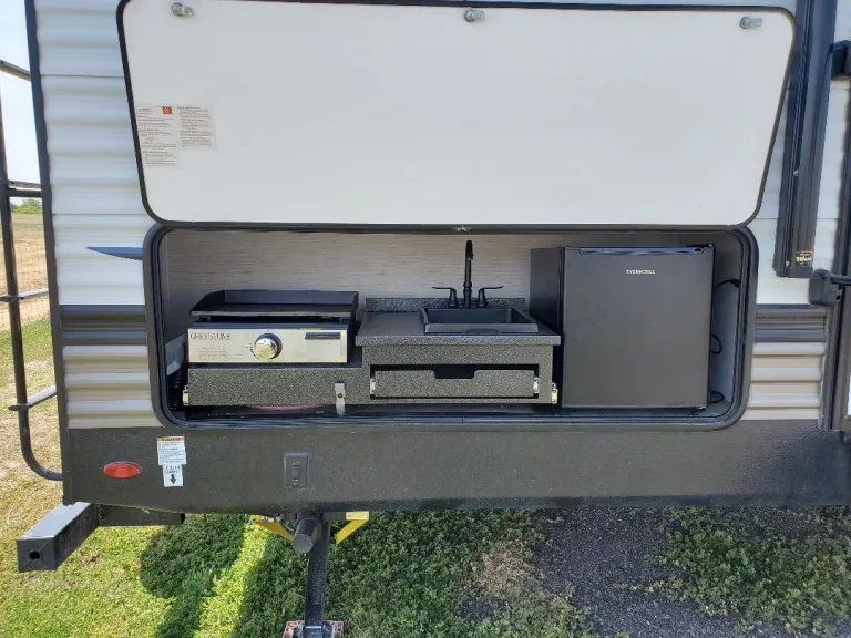 This trailer is perfect for you and your family's next get away. Spacious and sleeps up to 11. We are located just north of Corpus Christi Texas. This RV included an outdoor kitchen, 2 bedrooms private bedrooms, full kitchen spacious bathroom, fireplace and plenty of space to lounge. Bunkhouse RV - Spacious Floorplan - Dual Entry & More! Enjoy Lake Corpus Christi or waking up on the beach! The possibilities are endless!What's includedFresh linens, chairs, TVs, Radio indoor and outdoor, digital tv, BBQ pit, Awning is missing due to damage and waiting on replacement.Recommendationswe will deliver to any location of your choice! Enjoy the state park at lake Corpus Christi or enjoy waking up on the beach! The options are endless!Other things to noteNo smoking.