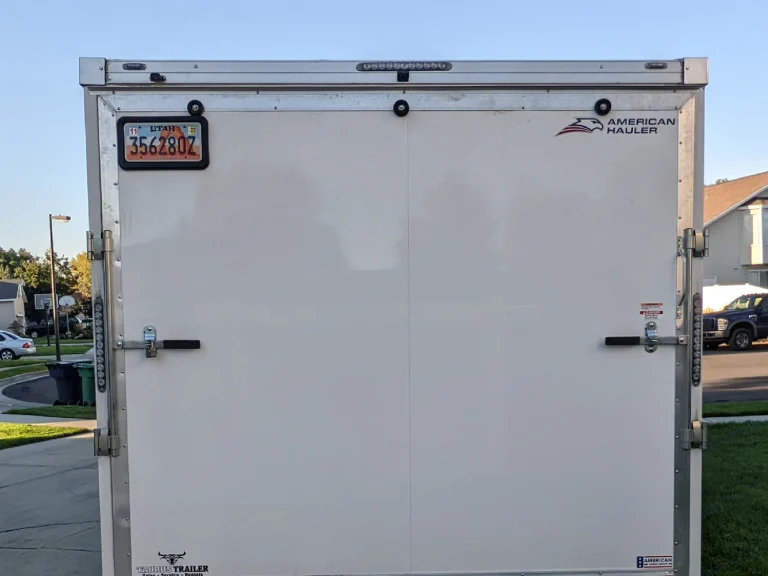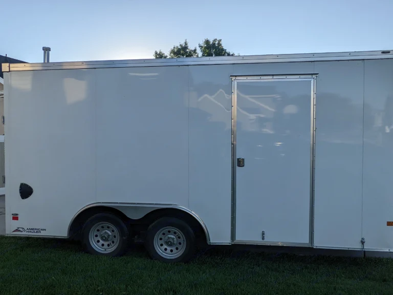 2021 American Hauler Enclosed Cargo Trailer. Electric Brakes AND Drop Down Rear Door. Interior Lights, Wall TIE Downs AS Well AS 4 Corner TIE Down Rings.