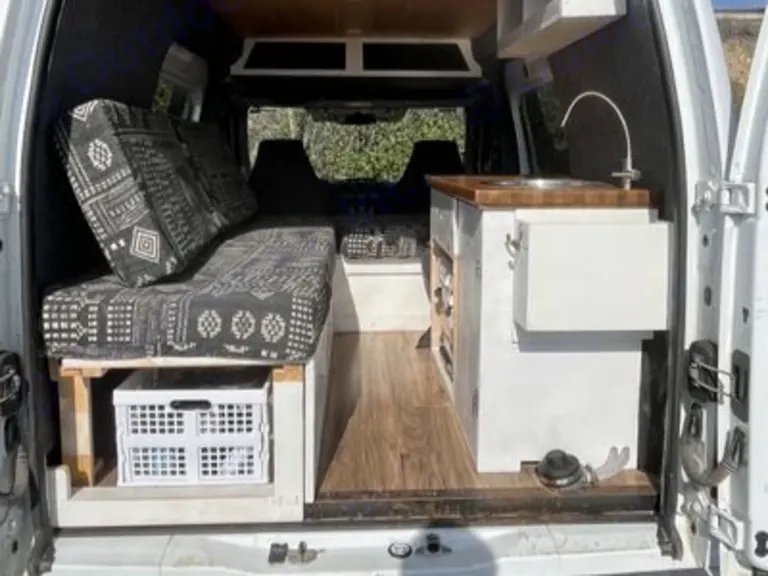 And most importantly, Tiny can be there with you to create some unforgettable memories exploring the Southwest.Tiny is the perfect set up for the minimalist single or pair that wants to have a home base on their adventure tours. Unlike many Ford Transit Connect build outs, Tiny's build out really optimizes the available space to offer a functional counter top and sink, a seating area for day time and a slide out bed frame to cozy up with a companion at night time. What's includedDue to minimal space we want to have renters choose which items they want stocked.