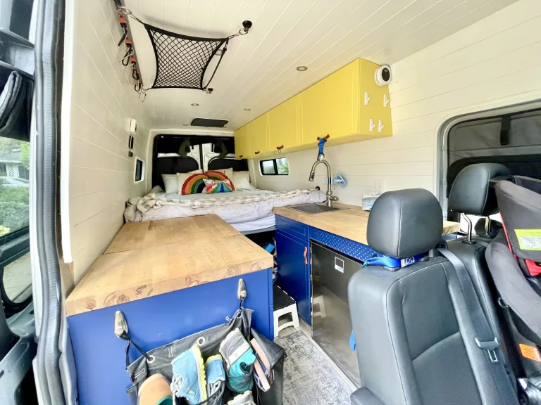 New 2020 Mercedes-Benz Sprinter (22.5ft long) featuring a 100% fully customized interior equally fully equipped and comfortable for short trips as well as super long hauls. It's got a queen sized bed with easy access to storage underneath, a custom-designed hidden indoor shower and comfortable portable toilet that's easy to clean, a portable propane stove, plenty of counter space, and a sink all in a compact footprint.Marshmallow seats 4 with the factory Mercedes passenger bench seat complete with Isofix latches for 1 car seat. The driver & passenger have swivel seats that turn around to face the removable table and create a comfortable dining area for 4 up front.2 sleep comfortably in the queen sized bed in the back. And 2 more can sleep comfortably up in the full sized bed in the pop top. Our sturdy Thule telescoping ladder gets you up there and secures with straps and a carabiner.*** YOU Provide Your OWN Sheets / Pillows / Blankets / Comforters / Bath Towels ETC! ***Everything has been thoughtfully prepared. There's a whole bank of cabinets up top for clothing, personal items, etc. I installed baskets for pantry items under the queen bed for easy access. There's extra storage below the 2nd row seats for kid stuff.We've got both types of USB outlets and 12V 3-prong outlets in convenient locations & dimming lights with remotes.Our diesel heater is very effective if needed. No A/C beyond the regular cabin A/C (like a regular car). But we've got some good fans (built into the roof + portable quiet fans for night use).There are huge clean water & grey water tanks and a recycling feature (if desired) for the shower water.We've got a camping couch (a chair that seats 2), a portable table, leveling blocks, first aid kit, tools, a drinking water hose, all the items you'll need except your personal things.As you can see...Marshmallow is the perfect fit for family adventures! Enjoy!What's includedA camping sofas (folding chair that seats 2 people...like a love seat camping-style!), cookware, utensils, everything you'll need in the kitchen though spices are limited. We have salt & pepper, cinnamon, and I think that's it. Canola oil in a little white squeezy bottle / olive oil in the yellow one - in one of the drawers. And personalized tips and guidance and even drop off upon request if we're around and you're local.RecommendationsAll the state, county, and national parks, seashores, and cities you could imagineOther things to notePlease....no smoking (of anything at all) inside or even outside (except a campfire) close to the van. If the van is parked close to the campfire please keep it closed up (including pop top screened windows) so excessive smoke doesn't get in and embed itself into the upholstery etc.Remember all the orientation & how to videos are on Marshmallow's website. But remember that some campgrounds and parks don't have cell / internet service. So make sure you watch the videos ahead of time! Luckily, everything is pretty explanatory and also pretty simple.Please treat Marshmallow with the respect she (and we) deserve. And call Emily if you have any concerns or questions - at any time. She'll try her best to answer in the moment and will get back to you within an hour for sure.Do not lose the keys please....replacement fee = $500 per key (Mercedes charges hundreds of $ to order a replacement)