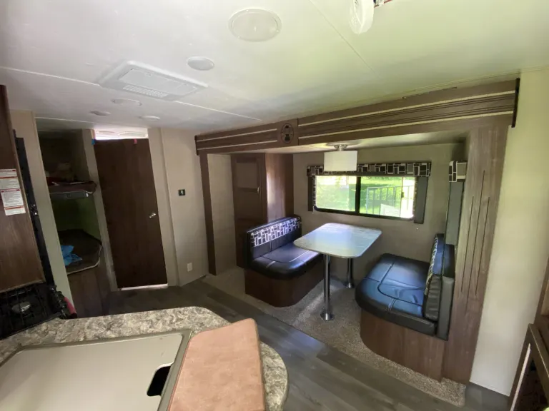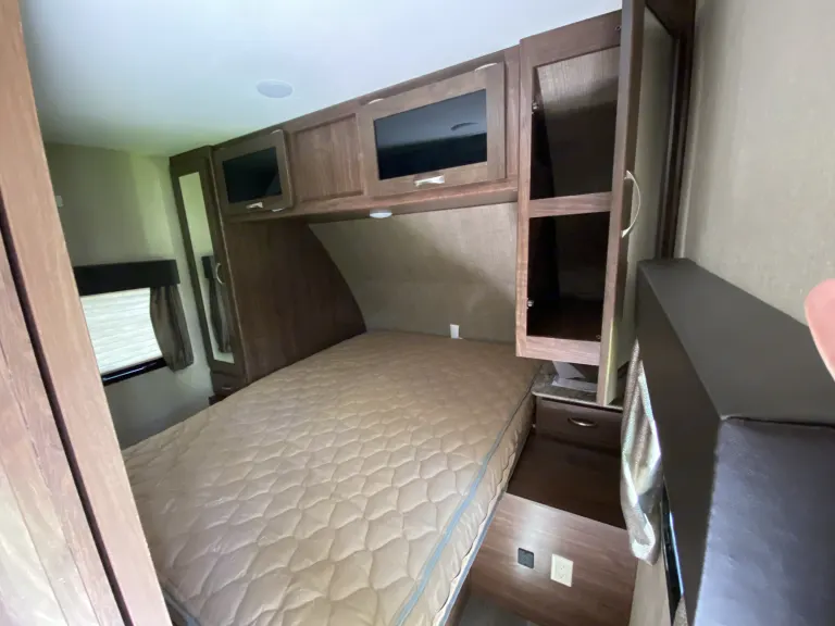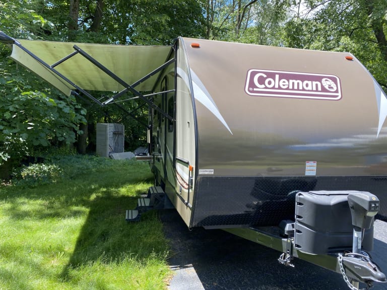 2017 Coleman Light Edition has a roomy queen size bed and two large bunks. The dinet folds down for additional sleeping space. There is an outside cooking station and you may use my small gas grill if you don’t own one.There is one slide-out which contains the dinet portion of the interior. There is a large awning to keep the rain and sun away as well. I also provide an outside carpet for you to wipe your shoes off and sit in comfort.The kitchen is spacious and has a fridge and freezer, decent sink with pull out faucet, water heater and a large pantry.Two propane tanks provide fuel for the heater and the powerful air conditioning unit is electric. Shore power is required to run the air conditioner and most electronics but a 2500 series or larger generator should be ok.The trailer is 24ft long, 27ft including the hitch. What's included2x camp chairs, linens, cookware, utensils, gas camping grill, tv, as well as other items may be included based on your needs. Delivery is not available RecommendationsThis trailer is at home on full hookup sites but is suited just fine for larger sites in the north woods. I am happy to discuss your camping options!Other things to notePets welcome but must be fully cleaned up after.