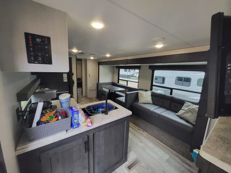 LP Gas Cap = 40Lbs*Portable dual fuel (gas and propane) inverter generator (optional add on). Comes with full tank of gas to start tripWhat's includedComes with pillows, sheets, and blankets for each bed, cookware and utensils for kitchen, bathroom essentials, such as soap, towels, and toilet paper, outdoor portable camping chairs, outdoor games, as well as water and electric hook-ups. Portable dual fuel (gas and propane) inverter generator (optional add on) comes with full tank of gas to start trip. Delivery, setup, and/or pickup available upon request, subject to radius.Other things to notePets welcome (Leash Latch w/Bonus Beverage Opener), but please keep off furniture, prevent chewing of interior, and clean up after any messes.