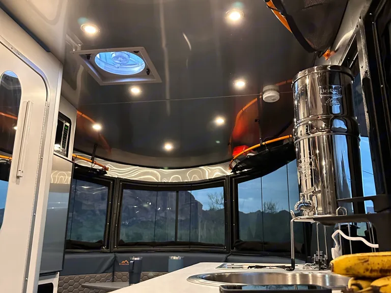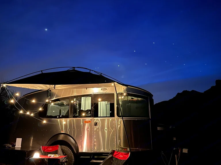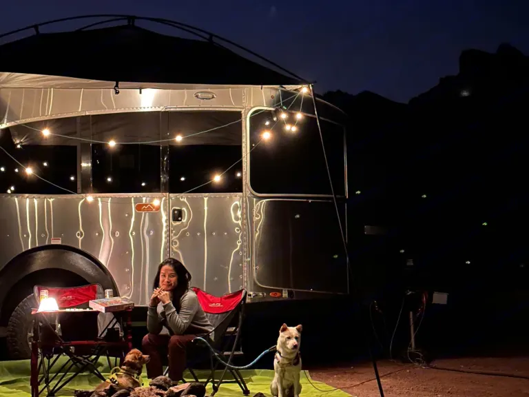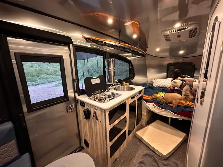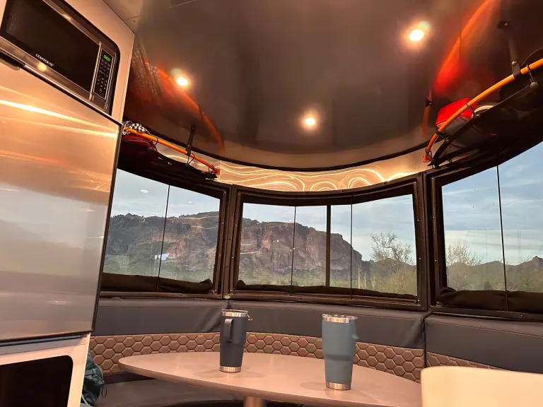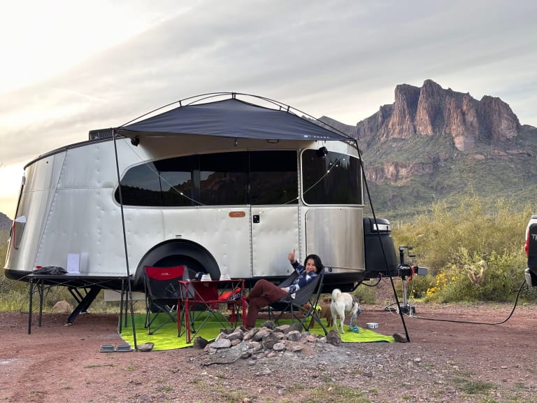 Imagine yourself and your loved ones on a beautiful camping trip in the heart of Arizona, surrounded by stunning red rock formations, and crystal-clear lakes. You pull up to your campsite in your trusty tow vehicle, and there it is, your home away from home for the next few days - the Airstream Basecamp 20X.As you step inside, you're greeted by the sleek and modern design of the interior. The ample windows fill the space with natural light, and you can't help but feel a sense of excitement for the adventures to come. One of the standout features of this trailer is the panoramic window that wraps around the dinette, providing a picturesque view of the beautiful Arizona sunset as you sit and enjoy your meal. The queen-size bed provides comfortable sleeping for two people and the furnishings are comfortable and stylish. The small bathroom with a shower and toilet, and the fully-equipped kitchen with a sink, two-burner propane stove and refrigerator, make you feel like you're at home.After a delicious meal cooked on the stove, you step outside to take in the beauty of your surroundings. The Basecamp's lightweight construction and off-grid capabilities make it easy to tow and maneuver, allowing you to explore even the most remote and rugged locations of Arizona. You're equipped with solar panels, a deep-cycle marine battery, and a freshwater tank, making it possible to camp in the most beautiful and secluded spots without sacrificing comfort or convenience.As the night falls, you retire to your cozy bed and drift off to the sound of nature. The next day, you wake up refreshed and ready for a new day of adventure. Whether it's hiking, swimming, fishing, or just enjoying the scenery, you know you'll be returning to the comfort and style of the Basecamp at the end of the day. The panoramic window provides an unbeatable view of the beautiful Arizona sunset that you will never forget. So go ahead, rent the Basecamp and embark on an adventure that you will never forget.What's includedWe want to make sure that you have everything you need for a comfortable and enjoyable camping trip. With your rental, you can expect the following amenities to be included:- Basic essentials such as toilet paper, plates, cups, and silverware