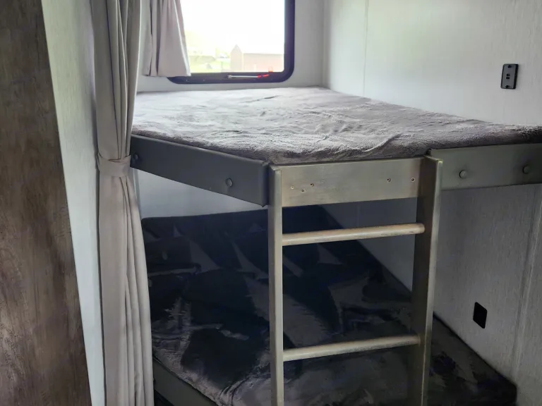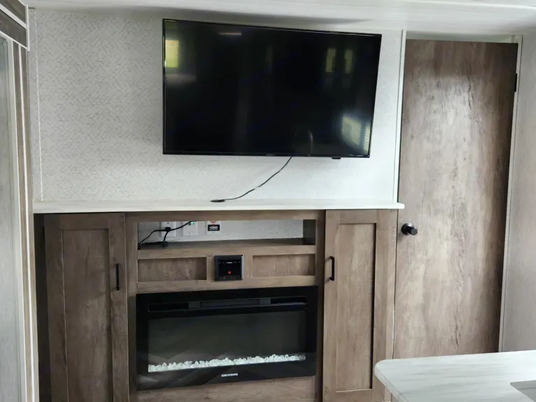 Beautiful 32ft camper perfect for family travels. The rear features two oversized bunks for the kids, with plenty of space to stretch out. The grown-ups will sleep soundly in the front queen bedroom, which includes hanging closets and under-bed Stow N Go Storage. The living area includes panoramic windows, Versa-Lounge and U-shaped dinette. The kitchen provides a 11 CU. FT. refrigerator and Tons of storage. 32" tv hangs over beautiful fireplace. Separate outside entrance to bathroom with walk-in shower.What's includedBasic tools, screwdriver, and pliers. 4 chairs, 1 full gas tank. Will provide Bluetooth brake controller for an extra $30(per request).RecommendationsLots of camping places to visit near the Warsaw, MO area.