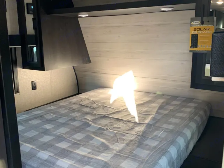 Excellent camper for families with children! Spacious bathroom/shower. Plenty of storage for food and clothes. Outdoor/indoor stereo system with BT connection. Outdoor refrigerator and sink. Outdoor shower. Queen size master bed, 2 twin bunks, jackknife sofa bed, dinette converts into queen bed. Outdoor TV, ice maker, electric griddle.What's includedSilverware, plates, bowls, 4 camping chairs, collapsible hammock, fresh linens, outdoor table, electric griddle, ice maker, outdoor flat top grill and pizza oven-all included! Ultra quiet generator available for additional fee.Other things to noteNo large pets! No Smoking! Dogs under 25lbs permitted. Renter is responsible for returning camper and provided equipment in clean, as rented condition. Renter is responsible for drainage of all tanks or will be subject to a sanitation fee. Renter is responsible for identifying any defects or issues with interior/exterior or provided items before taking taking delivery of the unit.