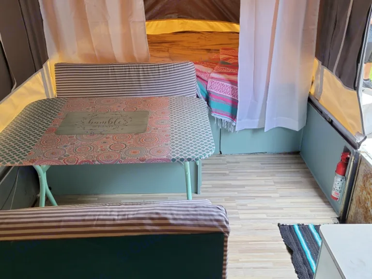 Completely re done 1988 coleman chesapeake pop up. New canvas. Mattresses. Cushions. Roof. Floor. You name it we re did it.