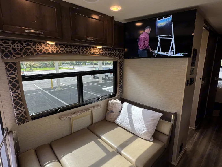 The Glamp Champ – Your Ultimate Tailgate & Travel CompanionWelcome aboard The Glamp Champ — a 32-foot rolling palace of fun, comfort, and adventure. Whether you’re setting up camp at a football stadium, cruising across the country on a bucket-list road trip, or parking lakeside for a weekend with family, this RV is designed to give you more than just a ride. It’s an experience.This 2018 Jayco Alante 29S isn’t just another motorhome. With its whole-wall slide, it opens up into a spacious living, dining, and bathroom area that feels more like a modern apartment than a camper. It comfortably sleeps up to 8 people, making it the perfect choice for families, groups of friends, or tailgate crews ready to make unforgettable memories.Luxury Meets FunInside, you’ll find a clean, modern interior with all the comforts of home. From a plush sofa to a convertible dinette, from the private queen bedroom to the overhead bunk, everyone gets their own cozy corner. And don’t worry about rainy days or downtime — you’ll have: