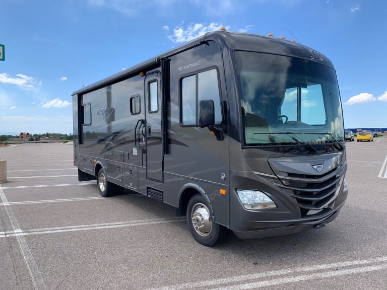 Excellent Condition, 2015 Fleetwood Storm MS28 Class-A RV, many extras. Includes motorcycle carrier with Honda 250cc CFR Rally motorcycle, insurance and deposit required. Ford V-12 Gas engine provides plenty of power. Two (2) Week minimum rental required, 1000 miles included ($1.50/mile after), 20hr Generator included ($30/hr after). Includes 2 TVs with DVD, LTE/5G cellular hotspot booster antenna hookup and extended range wi-fi system included. Can stock with things like lawn-chairs, portable smoker, printer, etc... as needed for fees to be discussed.