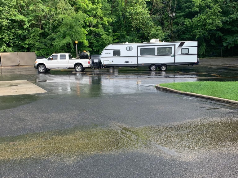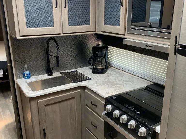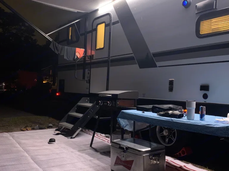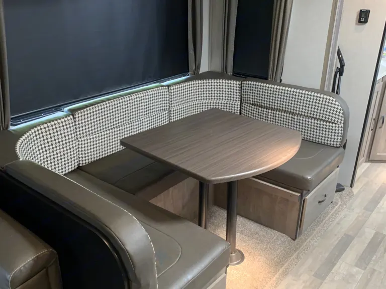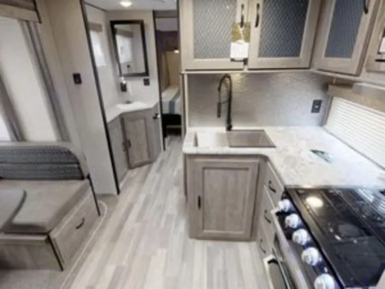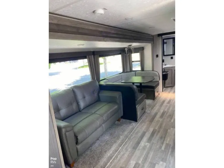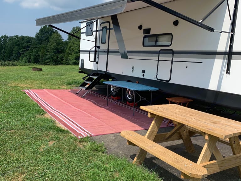 Beautiful newer camper with modern design. Sleeps up to 10 with 1 full bath. Bunkhouse has 3 twin beds plus a seating/couch area that folds out for additional sleeping space. Dinette folds out to sleeper plus a fold out sofa. Queen bed in master bedroom.Large flat screen TV, built-in stereo system with indoor/outdoor speaker system.Outdoor mini-refrigerator. Outdoor shower great for hosing off kids with sandy feet before entering the camper.Delivery: Delivery and pickup available on weekend days only within 60 mile radius of Shelbyville, KY for additional fee: Please message owner with preferred delivery/pickup dates for confirmation of delivery availability. Click to book and enter your dates, select delivery and it will calculate the delivery fee for you before you commit to the booking. What's includedKitchen cookware and utensils