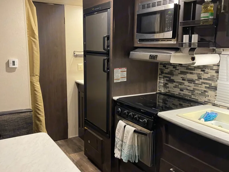 Salem Cruise Lite has all the necessities for both a short or long trip. This bumper pull comes furnished with all the little extras in the kitchen and a spacious queen size gel foam cooling mattress.This RV has an outside kitchen and grill so you can prepare your meals outdoors if you'd like.What's includedThis RV will come with fresh linens, towels and kitchen towels. The kitchen is equipped with a coffee maker for big groups, single serve Keurig, toaster, blender, chopper and dishware set for 4 people. The dishes are breakable so you can bring throwaway plates and utensils if you would like. RecommendationsOnce you have reached your destination I suggest you look over the RV to make sure that everything is working properly. Other things to note"SMALL" pets are welcome with a deposit fee. No smoking in this RV. The hitch size is 2 5/16th.