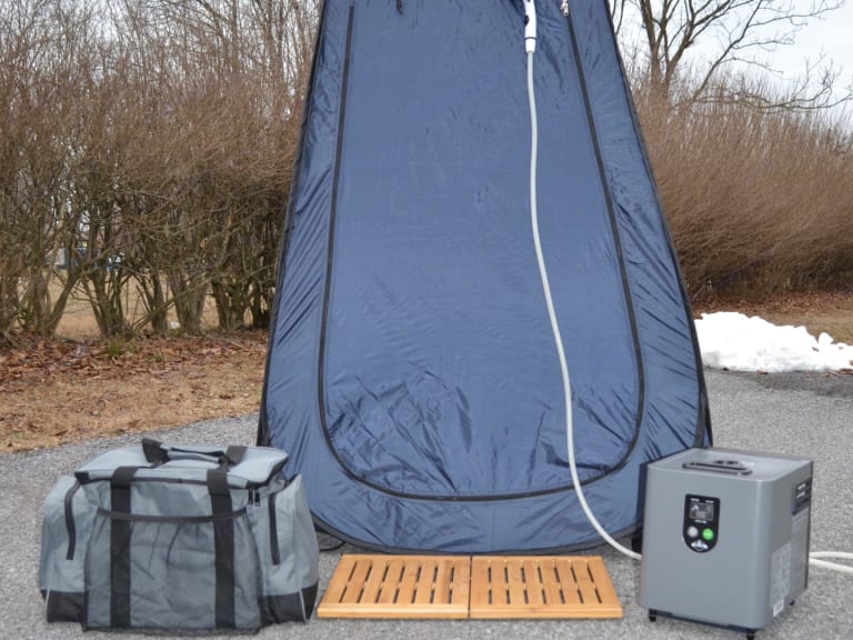 -Outdoor HOT water shower with Pop-Up Privacy Tent