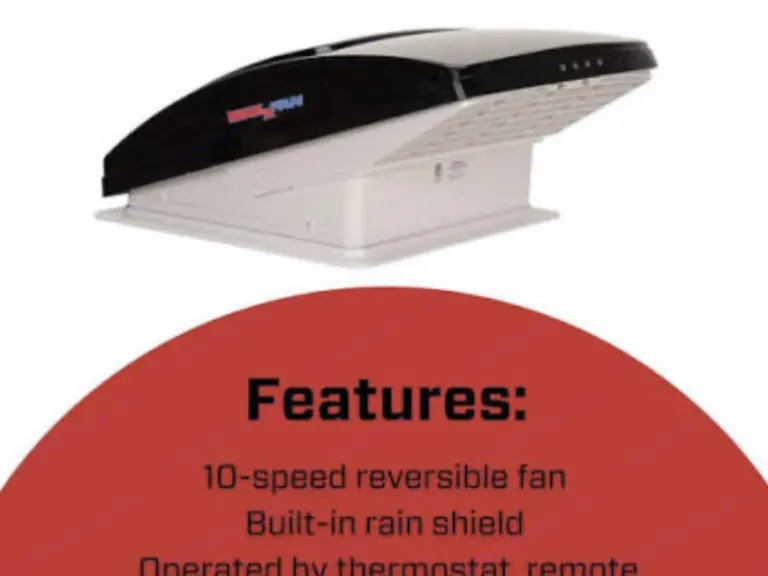 •Bathroom vent upgraded to MaxxFan 7500K with smoke lid, built-in rainproof cover, 10-speed intake/ exhaust fan (ceiling fan). Operated by thermostat, manually, or wireless remote control (while lying in bed!)—Easy Setup: