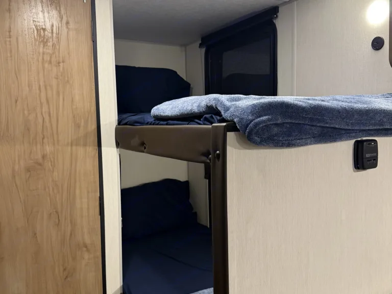 Has 2 twin beds and a queen bed. Dinette can also be turned into a twin bed. Shower, toilet, sink. 2 burner propane stove, sink, microwave, refrigerator. Outdoor fridge and outdoor shower. Electric awning with lights. Solar panel. Can be fully off grid if needed!What's included• Includes full tank of propane