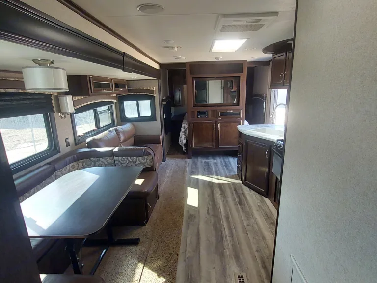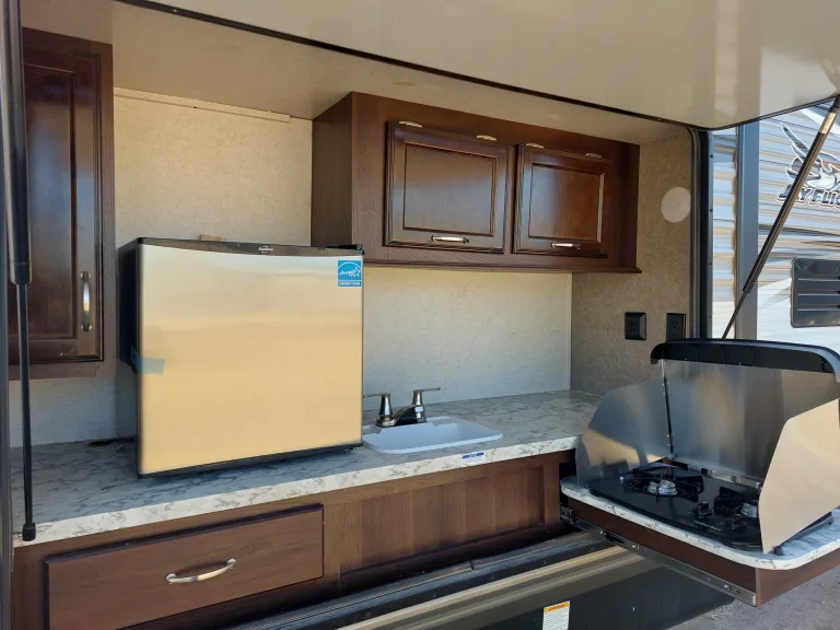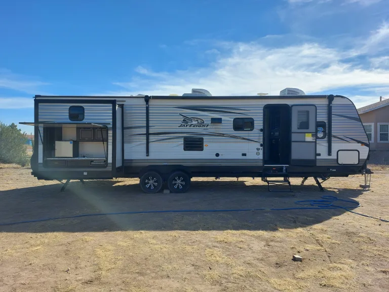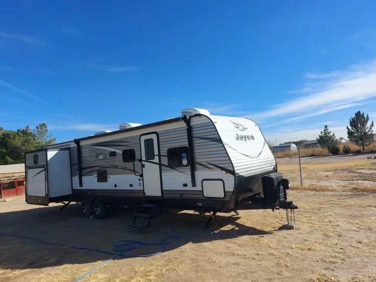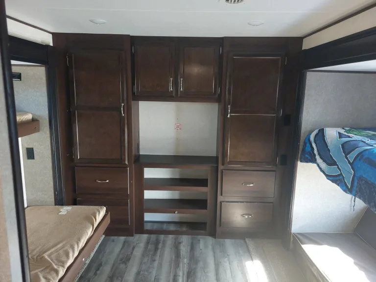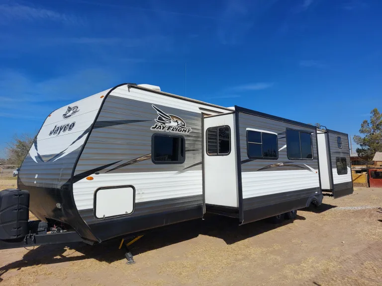 2018 36 foot bumper pull rv two rooms one bathroom 3 bunk beds in one room two ac units two refrigerators 3 slide outs Bluetooth stereo speaker outside and inside outside kitchen.Other things to noteNO PETS