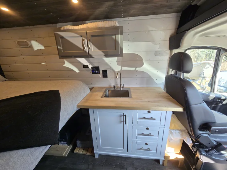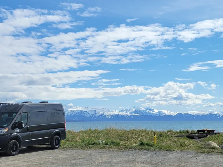 Named after her owner's home state, "Kentucky" or "Tuck" as she is lovingly referred to, is a 2020 Ram ProMaster 2500 high roof adventure van, sleek and custom built for simplicity and comfort. This converted beauty is equipped with all the essentials needed for your stress-free Alaskan adventure. "Tuck" offers a cozy full sized bed with a 10” mattress, high thread sheets and bedding, butcher block counter, sink, stove, Yeti cooler, on-demand hot water shower, LED lighting, exterior awning, a large 35 gallon water tank, and plenty of storage for all your gear and exploration needs. Tuck is entirely insulated and constructed with inviting rustic wood finishes. Kitchen essentials, fresh linens and towels, as well as an auxiliary battery for device charging allow a relaxing experience after an amazing day of hiking, fishing, sightseeing, exploring and more. Tuck is simple and easy to drive, can be parked practically anywhere, and requires only unleaded fuel. Pickup is available in the Kenai/Soldotna area. Drop off at the Kenai Airport is available as well. We will provide specific pick up and drop off instructions following your booking. For other pick up areas or one-way drop off, please contact us for rates.