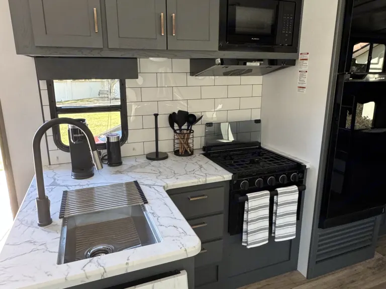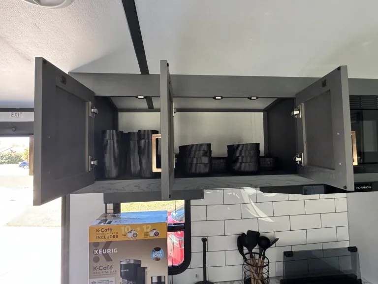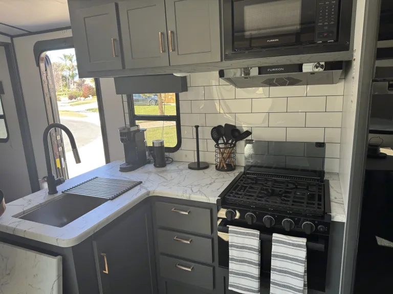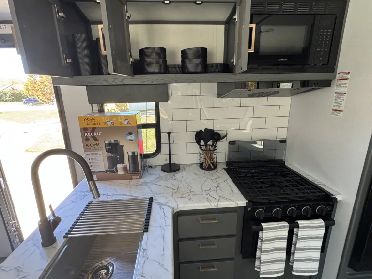 (Towels, hand towels, wash cloths, cups, bowls, plates, cutlery)• Includes new keurig barista bar with frother.
