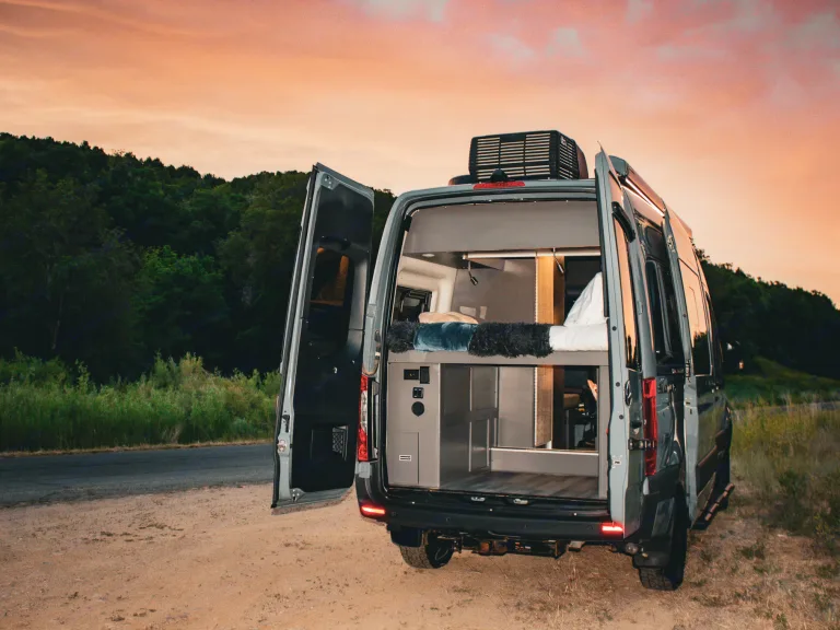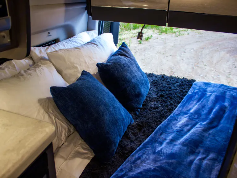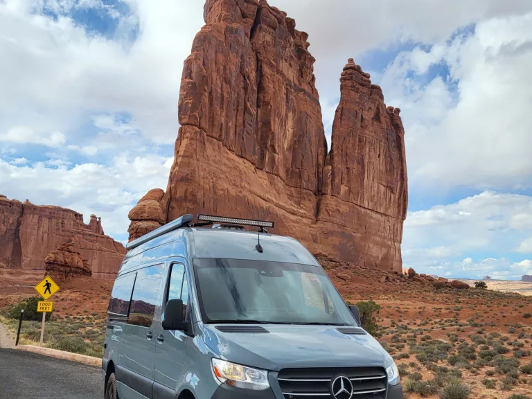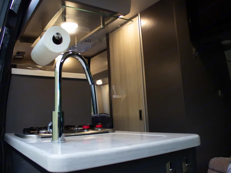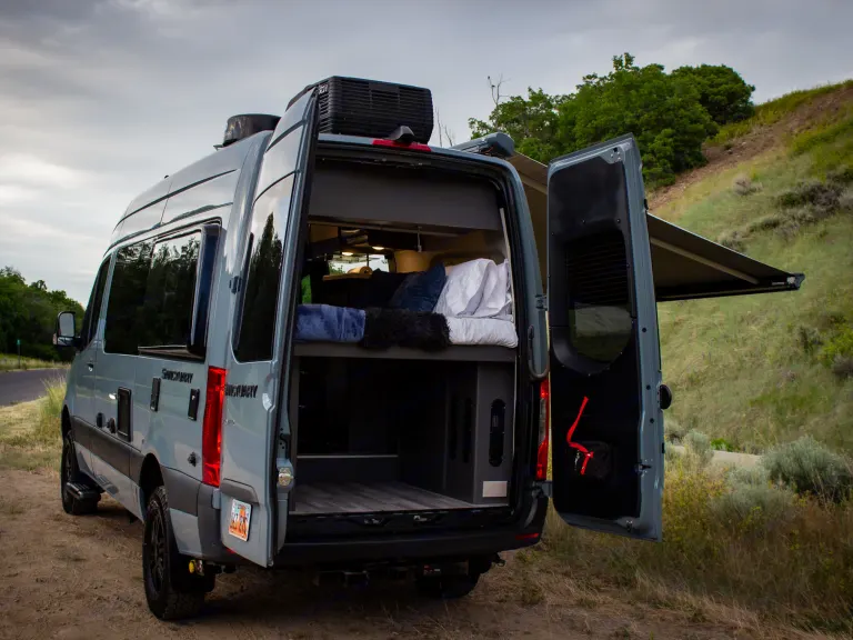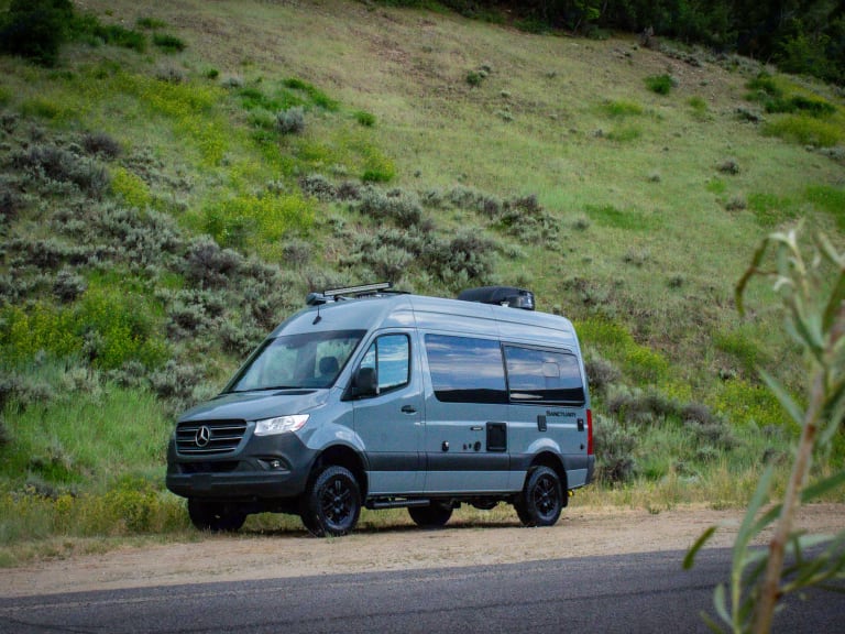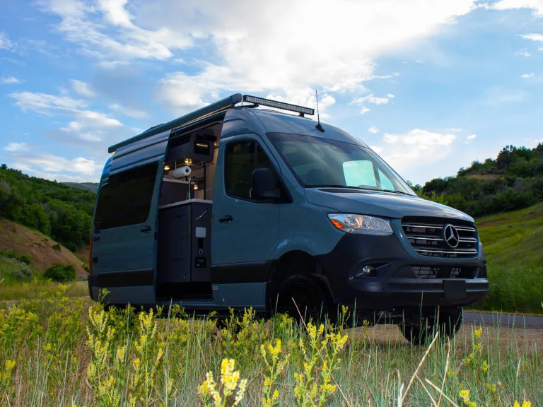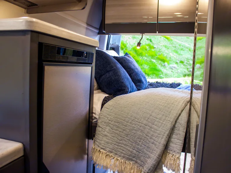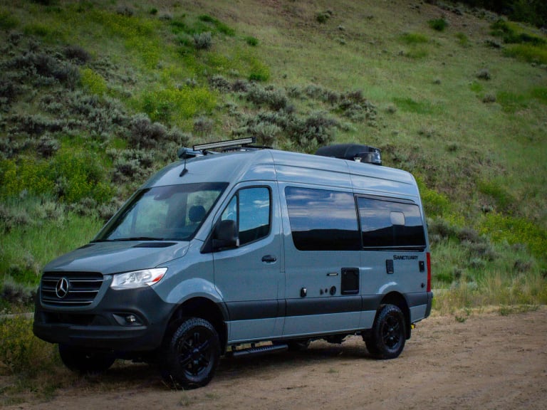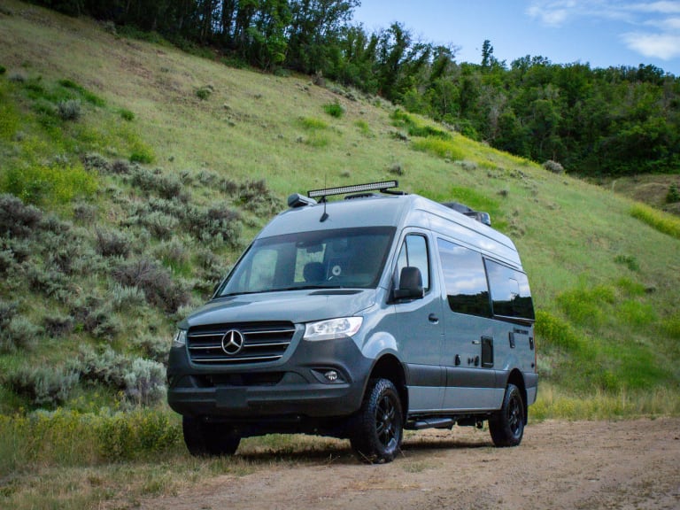 The Sprinter drives great, is easy to park, and comes clean and well-stocked. It features a fantastic house power system, great fridge capacity, and ample storage. Taller individuals might find the bed/shower tight.