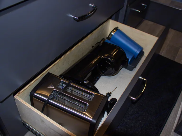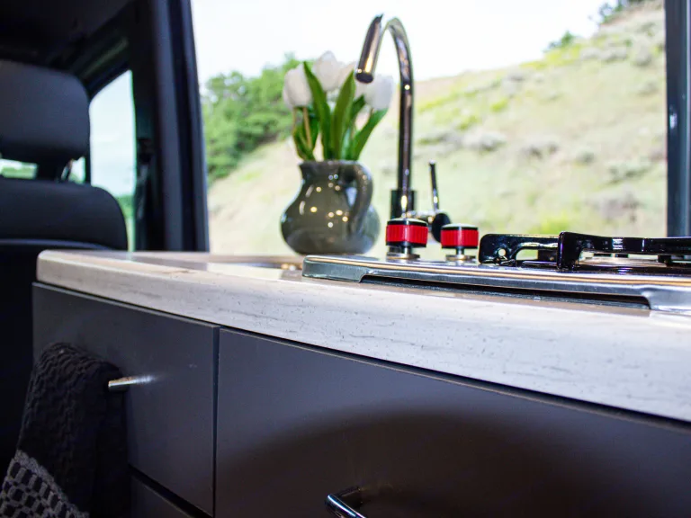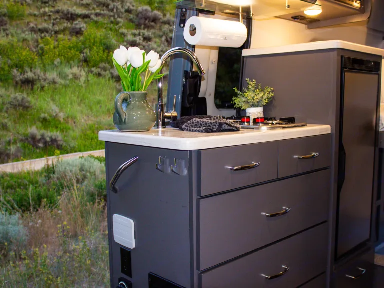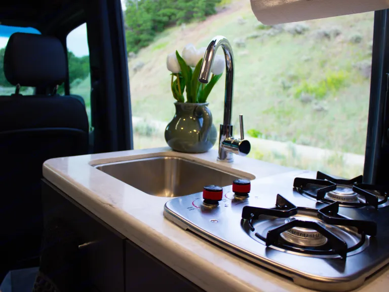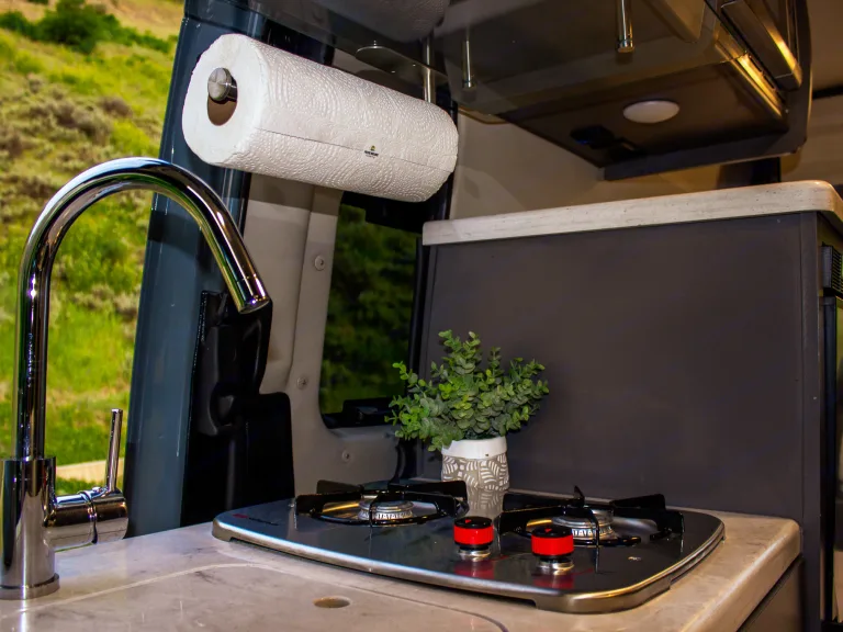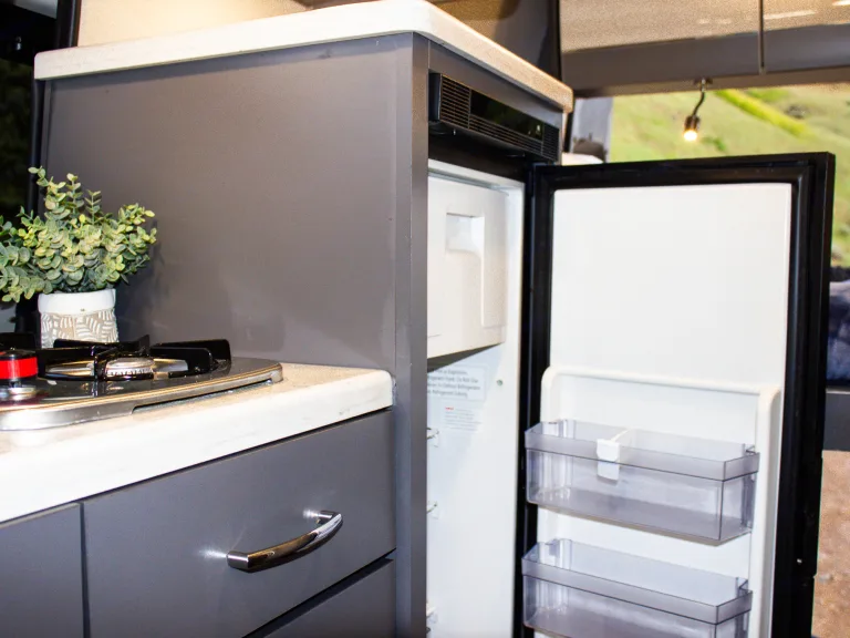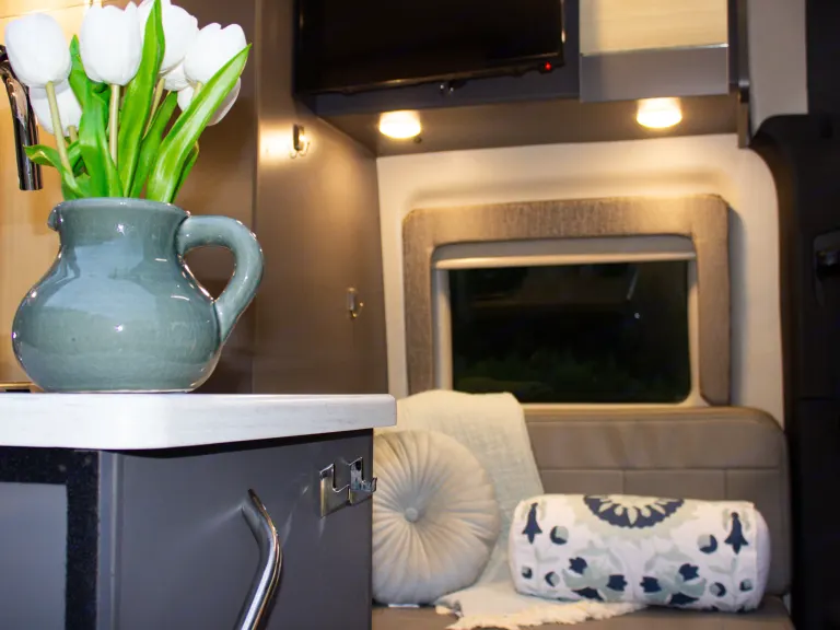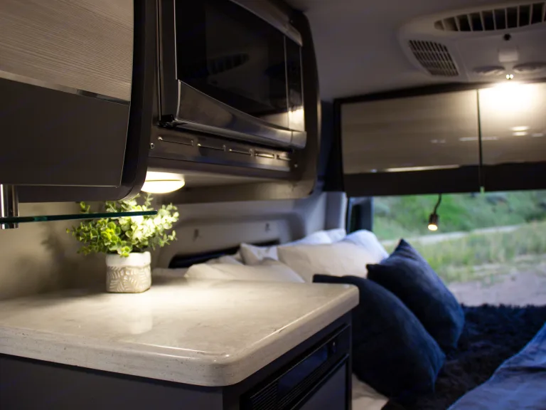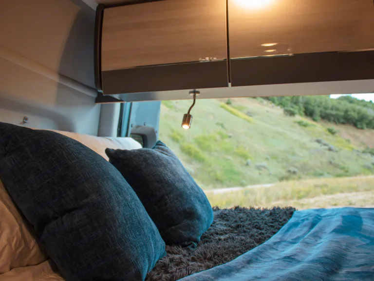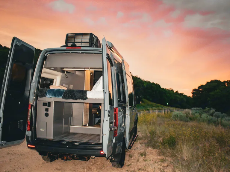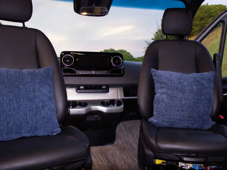 The Sprinter drives great, is easy to park, and comes clean and well-stocked. It features a fantastic house power system, great fridge capacity, and ample storage. Taller individuals might find the bed/shower tight.