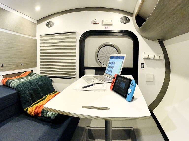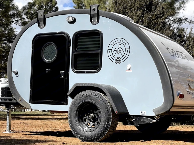The Mean Bean is easy to tow, spacious, and ready for adventure. Enjoy the comfortable queen bed, fully stocked kitchen, 12V fridge/freezer, electric roof fan, power outlets, and a pop-up table.The Mean Bean can be pulled by most SUVs, trucks and vans with a 2000lb tow rating and 2" hitch and ball. Electrical hookups are a circular 7-pin connection.Check out the add-ons for more conveniences like a solar panel, camp table and chairs and clean bedding. We always provide free mattress protector and a fitted sheet for the queen bed.- Propane cook stove, fully stocked kitchen