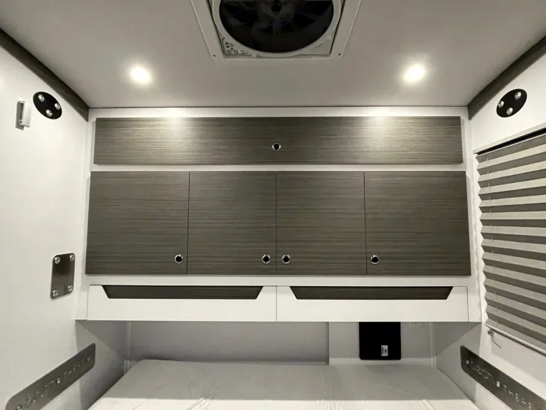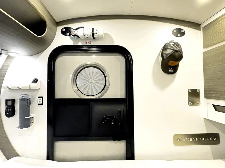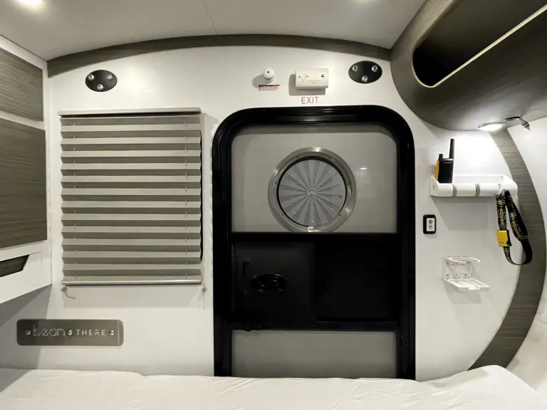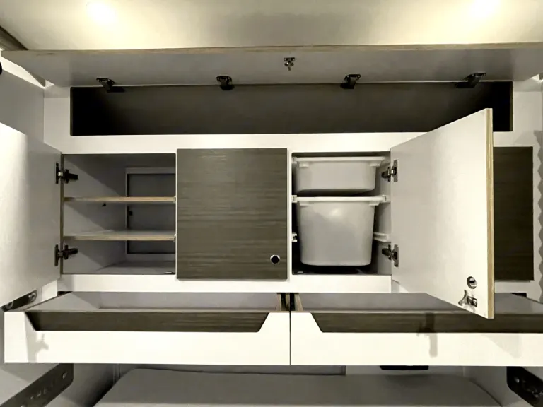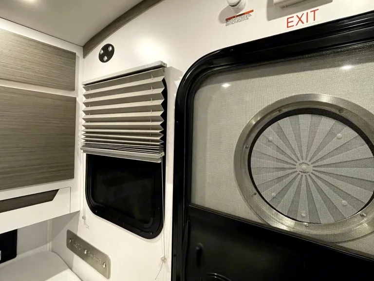- Lockable hatch door on kitchen galley that opens for overhead weather protection
