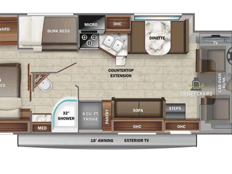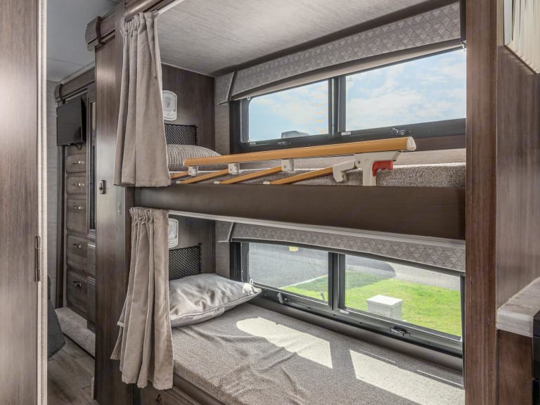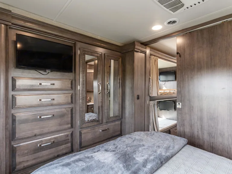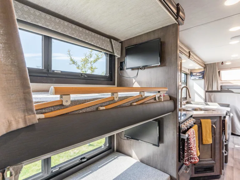 Exclusive JRide Plus ride and handling package for one of the best on the road motorhome experience you will find anywhere. This coach goes far beyond the essentials for ultimate comfort at camp and features, locked cabinets and drawers keeping the drive calm and comfortable.Automatic hydraulic leveling jacks.
