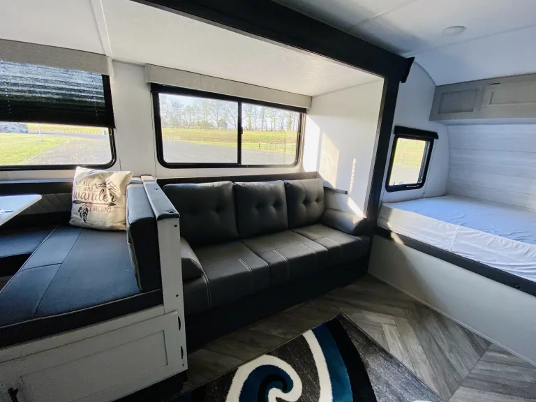 Beautiful and spacious Salem FSX 170SSX. This light camper gives you the open feeling of the bigger and heavier campers. This camper offers a queen size bed, full dinette, and a sofa that can fold down into a bed. There is a bonus fold out bunk for extra guests. The 170SSX comes fully furnished and ready to camp. Off grid camping is a breeze with the added 12volt solar charging system, and we offer a generator if needed. Bring out your family and pets and enjoy the wilderness.What's includedThis camper comes with 4 foldable camp chairs, outdoor carpet, all the connections required for a full hook up, leveling blocks, stabilizers, tool kit, Keurig coffee maker, toaster, decorative pillows, pots, pans, utensils, plates, bowls, cups, coffee mugs, toilet paper, a roll of paper towels, hand and dish soap, and basic cleaning items. Delivery and pick up can be available upon request for an additional fee.