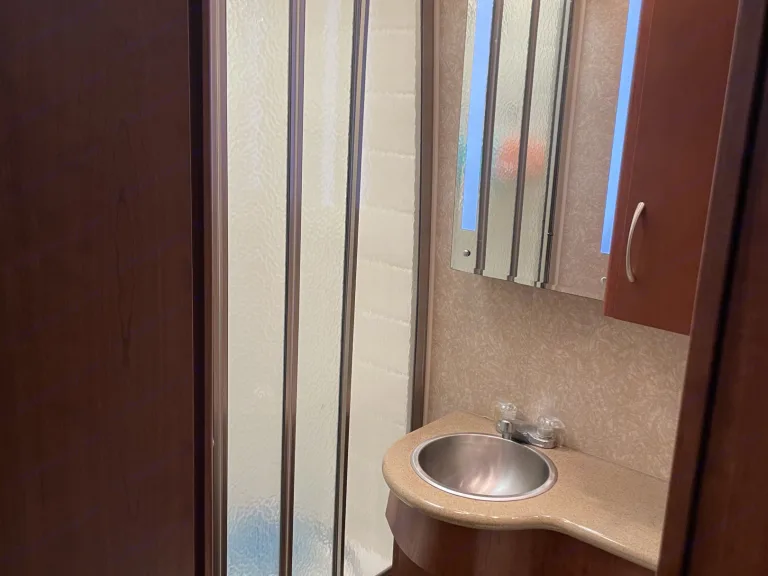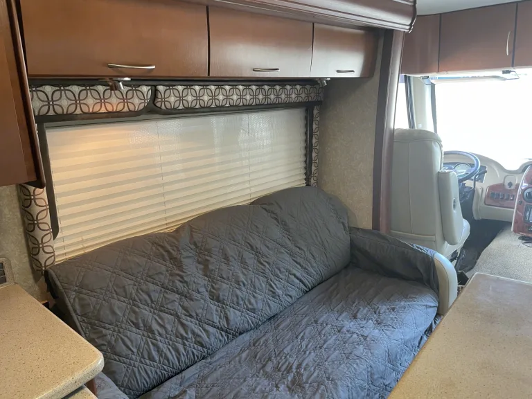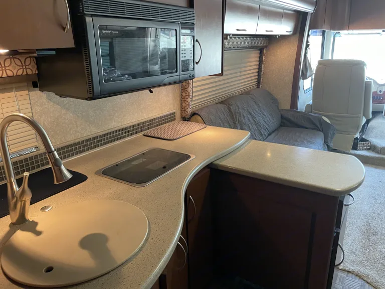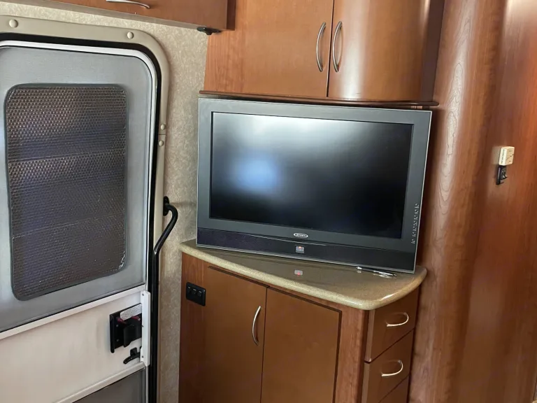 Diesel engine, Generator, 2 slides, Auto leveling system, Bathroom with shower, & lots of storage! Easy to drive and park, rear view camera system, MP3/Bluetooth/Disc player. Main living area has TV with DVD player. Kitchen has plenty of countertop space with range, microwave and refrigerator at easy access. Hallway to bedroom offers a spacious closet to hang clothes and several drawers and cabinets further maximize clothes storage space.
