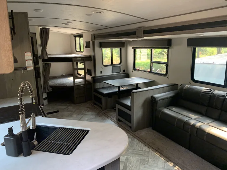 Our practically brand new trailer has only been used a handful of times. Bunk beds are great for adults or kiddos with a max weight of 350 on top bunk. Plenty of storage and room to make it your home away from home during your next adventure.What's includedCamp chairs, fresh linen, Fresh bead spread, fishing poles, outdoor dining table, personalized gift basket.Other things to noteIf you make a mess please clean up after yourself. Be responsible, and have an amazing time in the trailer :) we would love to see all pictures and stories of your adventures.