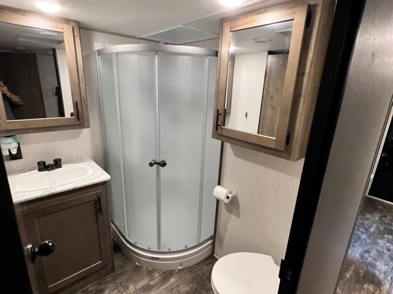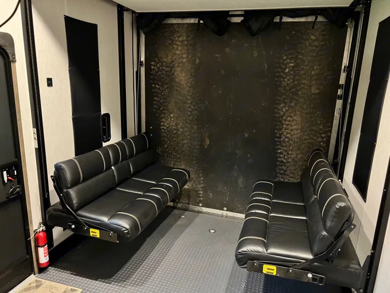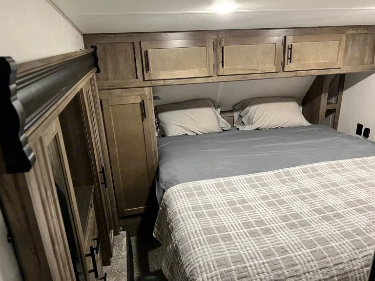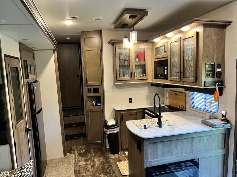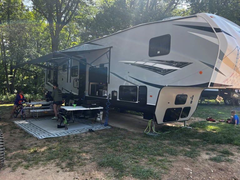 ready for an outdoor adventure? we are offering a beautiful well kept and ready to go fully equipped camper. wanting to bring the whole family or a couples get away this is the camper for you. can sleep 7 adults comfortably along with a full bath and half bath in the rear. camper is stocked with everything you need for a full weekend getaway or feel right at home for the week long trips. includes all kitchen essentials, plenty of pillows and blankets for all guest, two smart TVs, outdoor chairs, 22" black stone, dry outdoor kitchen with mini fridge. bunk style beds in the garage. Pet friendly in the garage portion only. Feel right at home and come stay with us and enjoy the great outdoors What's includedfull kitchen essentials, camping chairs, 22" Black Stone grill, outdoor table, bathroom essentials, picnic table covers, plenty of pillows and blankets, roasting sticks, outdoor mats, outdoor LED lighting. board games and coloring activities for all ages. Recommendationsall trash and personal items must be removed at the end of the rental period or an extra fee will be applied. All kitchen items must be cleaned and put back away after the rental period. all bedding must be stripped from beds after rental period.Other things to notePets must be kenneled in the garage area of the camper. NO FREE ROAMING In the camper. NO smoking of any kind allowed inside the camper at any time. Renter is responsible for any missing or damaged supplied essentials. Renter is responsible for any damage to the camper while camping or hauling. excessive amount of mud/sand/dirt from renter while be used will be charged extra for the cleaning fee. Please specify of the site is full hook up.