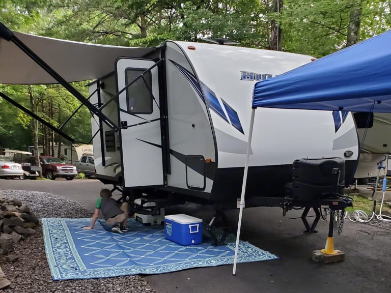 We have loved to tent camp for many years, but it finally became too much for my back.HAHAHA. We are relatively new to the RV life, but we have enjoyed getting away as much as possible. This year was our first long trip. We spent a week in Gatlinburg for the Fourth of July. We often go for a long weekend when our busy work schedule permits. We are happy to share our travel trailer for others looking to escape the hustle of daily life and relax at the campground. Happy Camping!!!